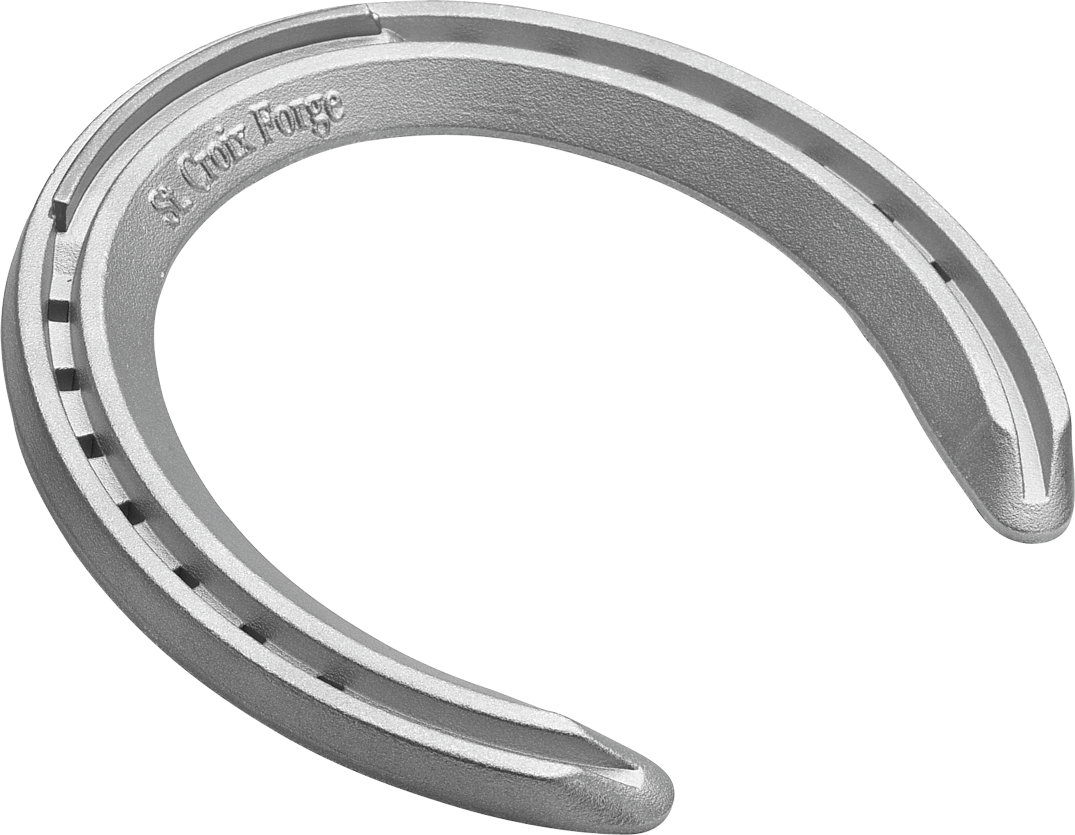St. Croix XLT Offers a .08" (2mm) steel toe grab. The St. Croix XLT is one of our more popular race shoes in North America. This proven shoe has been worn by some of the most famous race horses and is allowed to be used at many dirt tracks. The front and hind pattern make shaping simple and the high quality aluminum wears well even at tracks with paved or concrete barn surfaces.