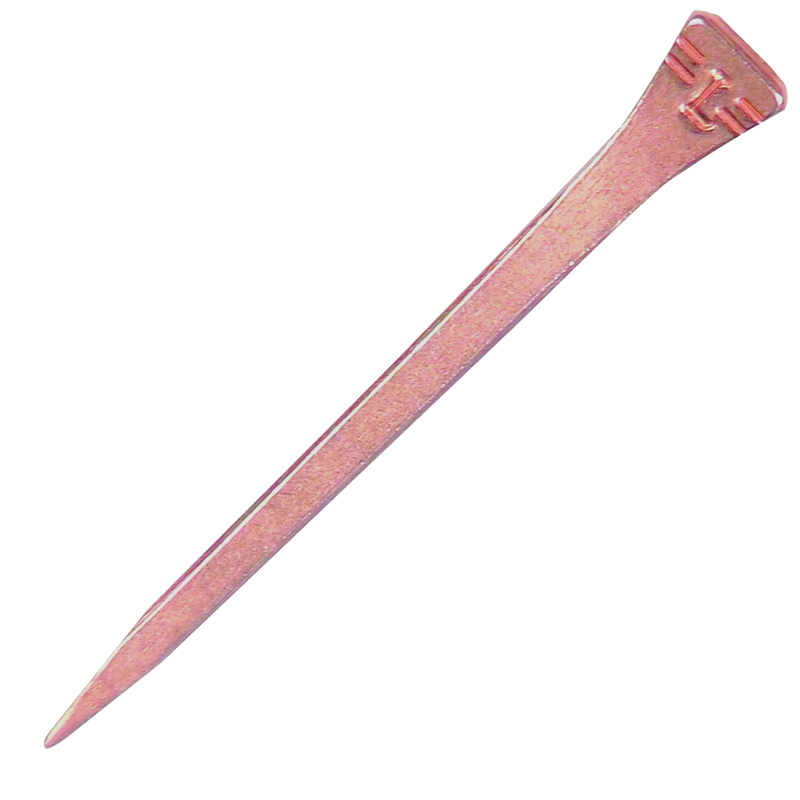 The bevel angle on the trademark face of the nail allows the nail to lock in better in all types of shoes punched for E-Heads, including concave. The slightly larger specifications of the shank immediately under the head will provide additional strength and a better fit in the pritcheling of the shoe.
