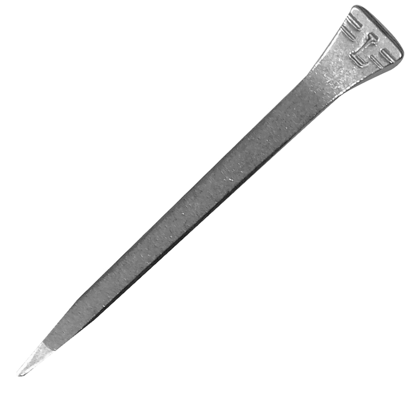The bevel angle on the trademark face of the nail allows the nail to lock in better in all types of shoes punched for E-Heads, including concave. The slightly larger specifications of the shank immediately under the head will provide additional strength and a better fit in the pritcheling of the shoe.