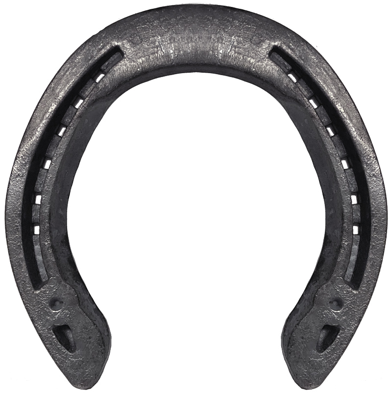 The ULTRA Hind Steel Horseshoes have a conventional design that incorporates many necessary modern-day features. The ULTRA Hind shoes come in a true hind pattern that helps eliminate some issues caused by the "one-style-fits-all" shape of many keg shoes on the market today. The shape of the ULTRA Hind allows farriers to achieve a better fit more quickly because the shoe is designed to fit around the coffin bone will few alterations, meaning the widest part of the shoe aligns with the widest part of the foot quite well right out of the box. This shoe features a well designed ROLL in the toe of the shoe that continues towards the quarters, offering the much-needed Leverage Reduction required for many equine athletes today.