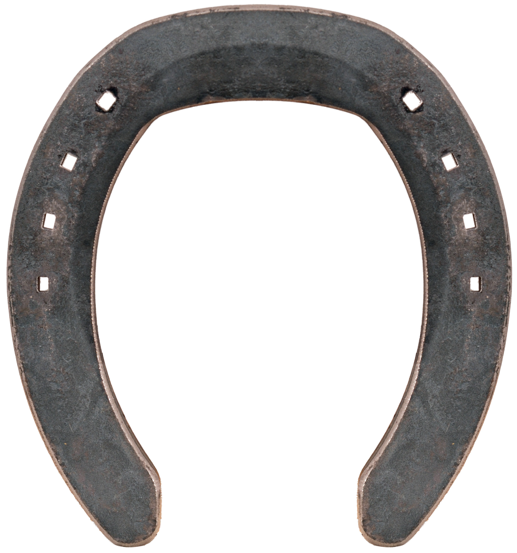 The PROfile™ Hind shoes are specially designed to facilitate many of the needs of today’s performance and sport horses. The PROfile™ features a beveled toe to allow for ease of breakover and leverage reduction and a unique nailing pattern to allow for an optimal amount of toe slide required by performance horses. The primary nail hole is set out of the crease so the nail head can be ground flush causing the toe portion to have a reduced amount of friction. The shoe is then creased from the second nail hole back to allow for some M/L traction. The overall side profile of the shoe is slightly graduated to help with pastern alignment and to mimic the natural progressive wear configuration of hind sport shoes. The foot surface of the PROfile™ is well seated out to allow for good sole relief. And finally, alignment marks on the center of the shoe make it easier to get the shoe properly placed around the widest part of the foot to maintain good D/P balance.