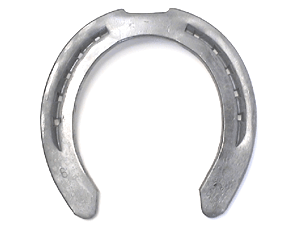 This Kerckhaert Steel Draft shoe has strong toe clips on both front and hind patterns. The shapes correspond to the natural shape of the draft horse. Shoes are symmetrical.