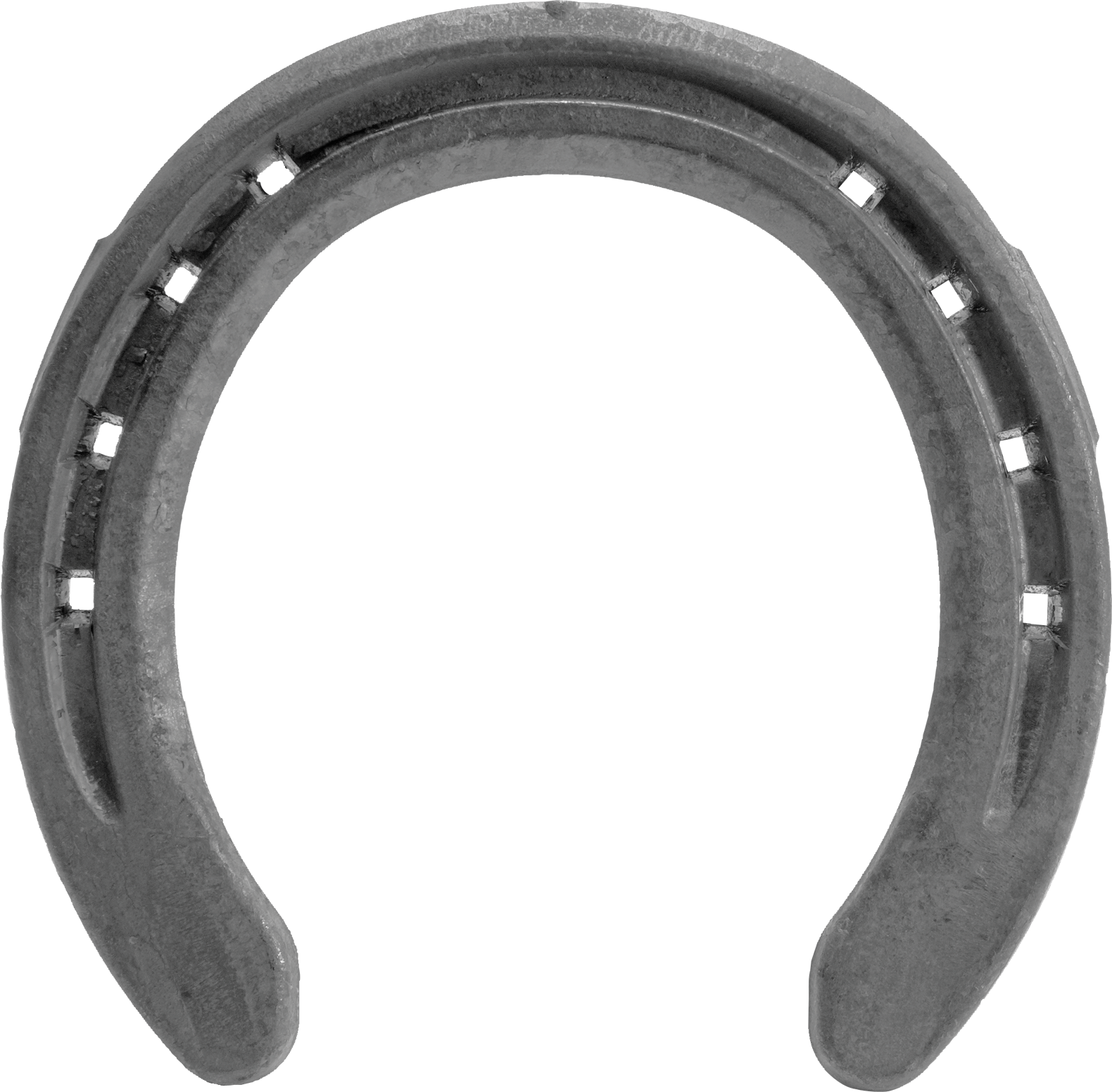 The Eventer is designed to provide the protection and support of a wide webbed shoe with breakover and traction of a rim shoe. The heel shape allows for a tight fit while still providing enough material for support and studs when required. The front and hind shapes typically require minimal shaping, and they are punched for a CH5 nail.