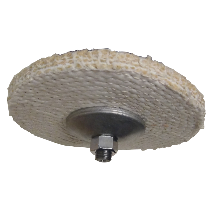 Layered cotton and sisal fibers. Used for blending surfaces prior to final sharpening and removing file markings. Use with Gray Compound. Dimensions: 6" diameter, 1/2" thick, 1/2" arbor hole, 1/4" spiral sewn. It is important to note the wheel must be used in combination with polishing compounds.