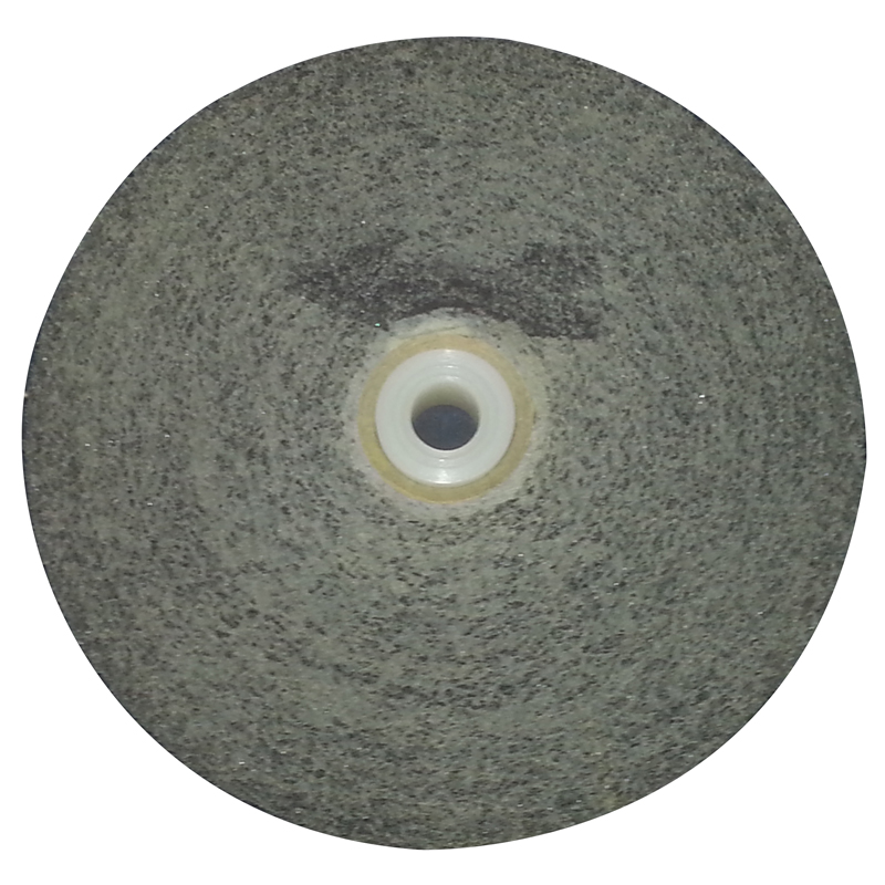 Deburring wheel embedded with silicon carbide crystals. Used for blending surfaces prior to final sharpening and removing file markings. No need to use compound. Dimensions: 6" diameter, 1/2" thick supplied with telescoping bushing for various diameter shafts.
