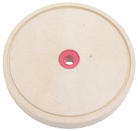 Made from medium density felt. Used for final polishing of knife edges and cutting tools. Typically used with White or Green Compound. Supplied with a groove for sharpening the hook of a knife. Best choice for final polishing of hoof knives. Dimensions: 6" diameter, 3/4" thick supplied with telescoping bushing for various diameter shafts. Baldor 1/4 hp buffer operating at 1800 rpm is recommended.