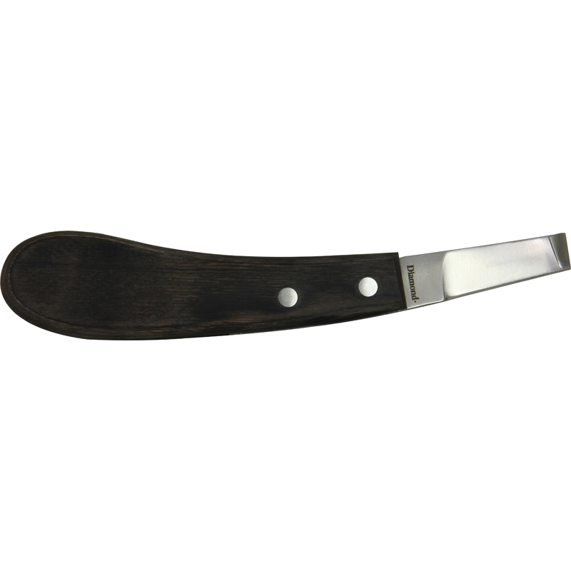 This redesigned Diamond hoof knife was designed with the horse owner and farrier in mind. These knives feature sharper stainless steel blades that hold their edge much better than other knives. The packaging has also been significantly improved to be more retail friendly and provide the customer with the information they need to make an informed purchase decision. Left hand, wide blade.