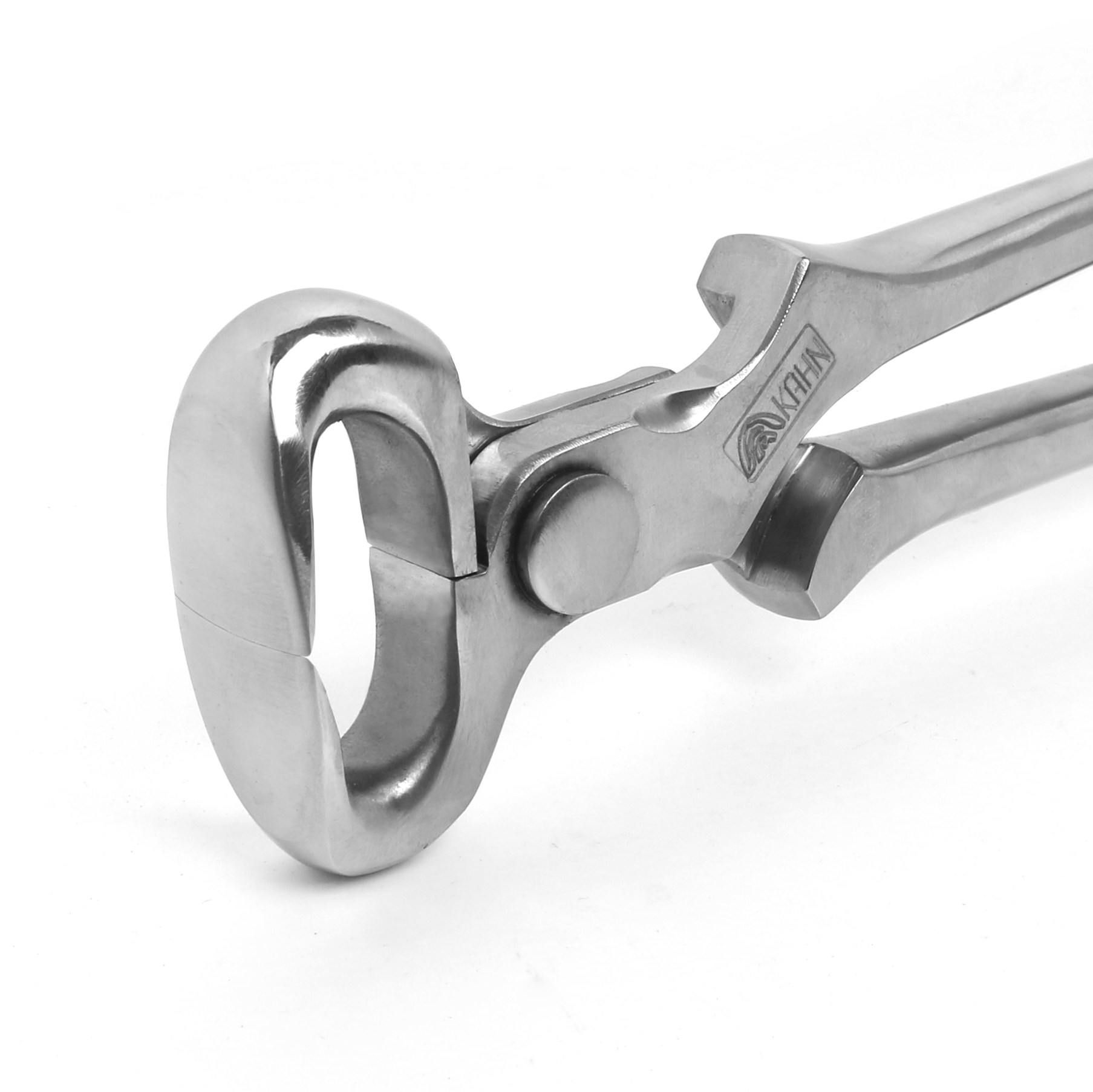 Based on the dimensions of the 14” Race hoof nipper, the sole nipper is designed to pare the sole on hard, dry feet and features blades with a curve similar to a hoof knife.