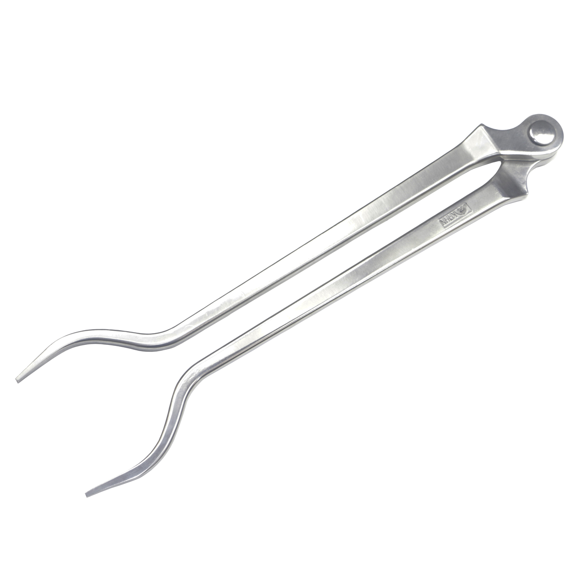 The Kahn 12" Hot Fit Tong features a lightweight hand polished design with handles that are set for easy control and comfortable use. Drop forged from 1040 heat treated tool steel with lifetime guarantee against breakage.